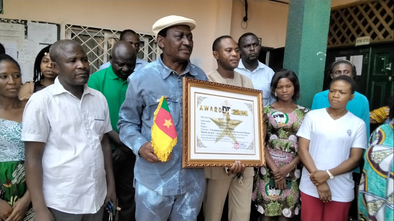 Jean Marie DONGO, ancien fonctionnaire et homme politique originaire de la Menoua dans la région de l’Ouest du Cameroun, a dédié sa vie à la formation de la jeunesse à travers son complexe scolaire. Il reçoit donc ce prix « Étoile d’or 2024 » pour sa brillante contribution au développement socio-éducatif des jeunes au Cameroun. C’est non seulement une reconnaissance nationale, mais aussi une invitation à continuer sa mission pour l’éducation.