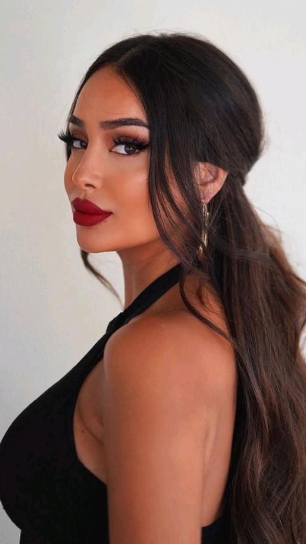 Son regard, maquillé avec finesse, est fixé sur l’homme qui l’attend.
