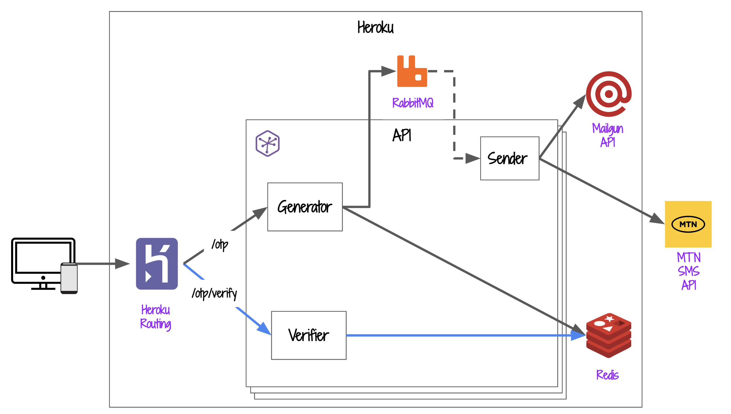 Pour les besoins de cet article, on va implémenter un système de gestion de One Time Password basé sur Spring Boot et déployé dans Heroku, qui va permettre de: