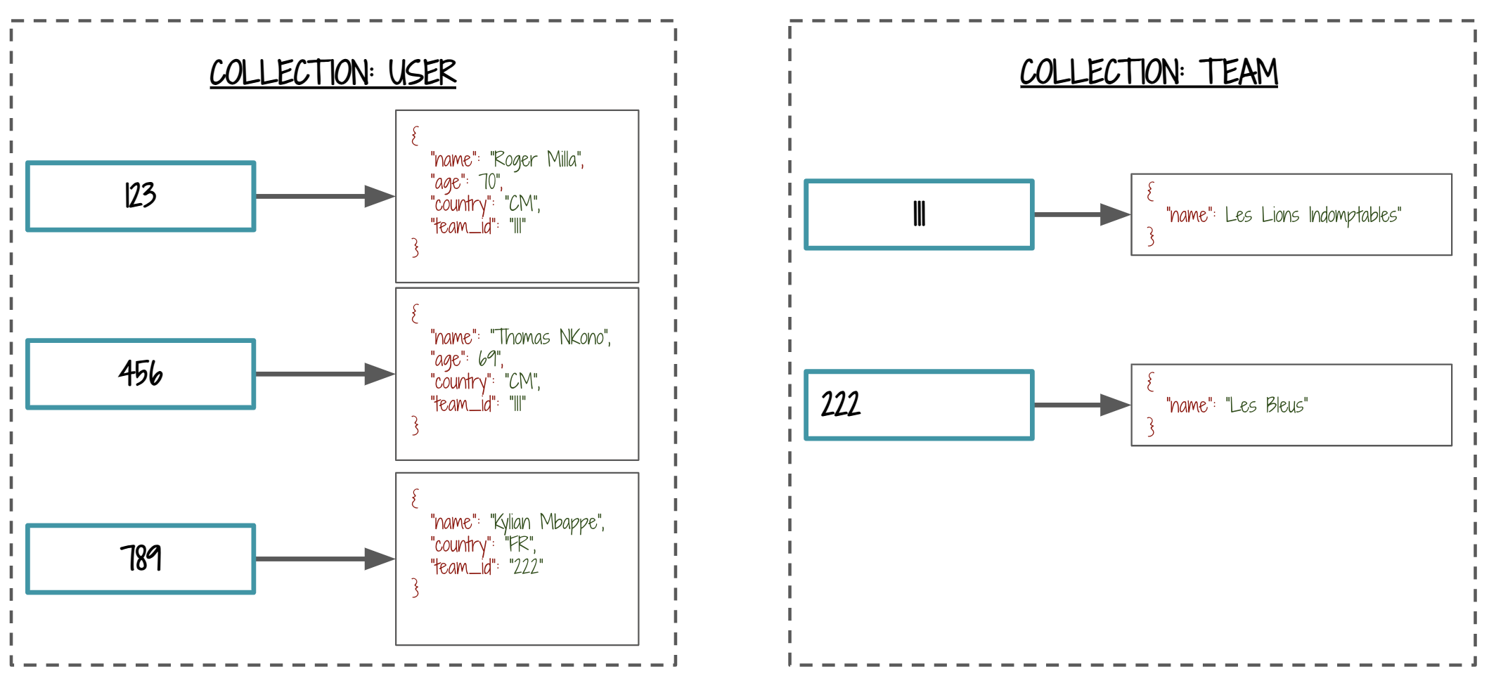 - Exemples: MongoDB, Cloud Firestore, AWS DynamoDB