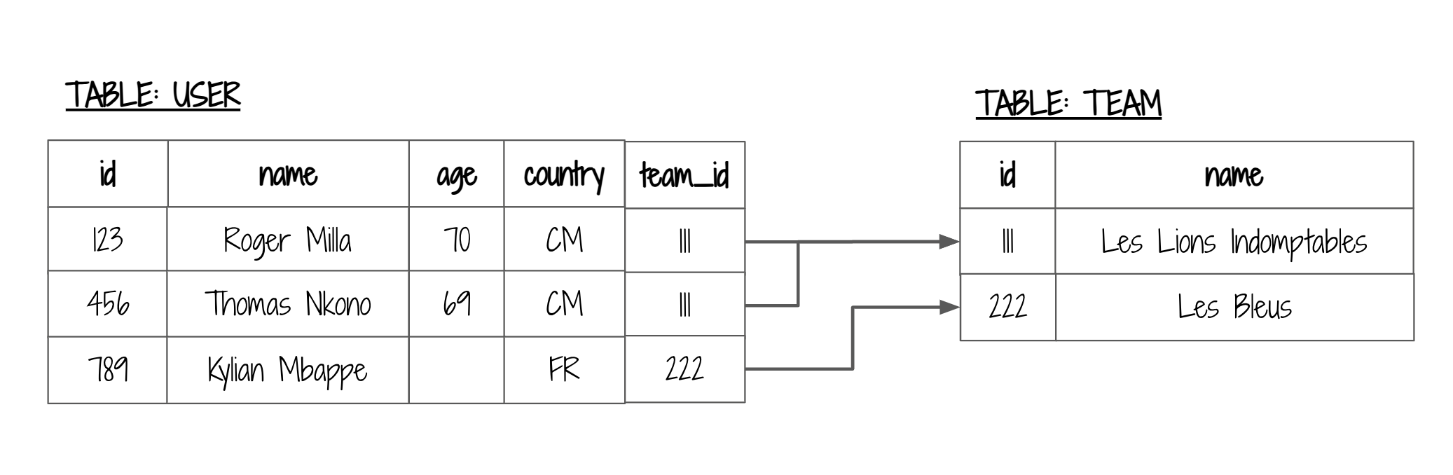 - Des clés étrangères (foreign key) qui permettent d'établir les relations avec d'autres tables.