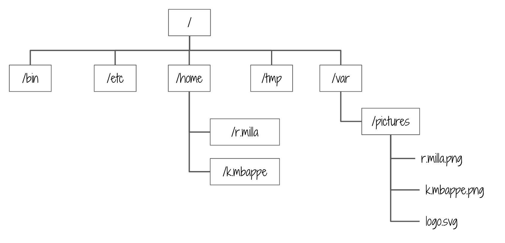 Les fichiers sont stockés sur disques, et organisés de manière hiérarchique dans des répertoires.