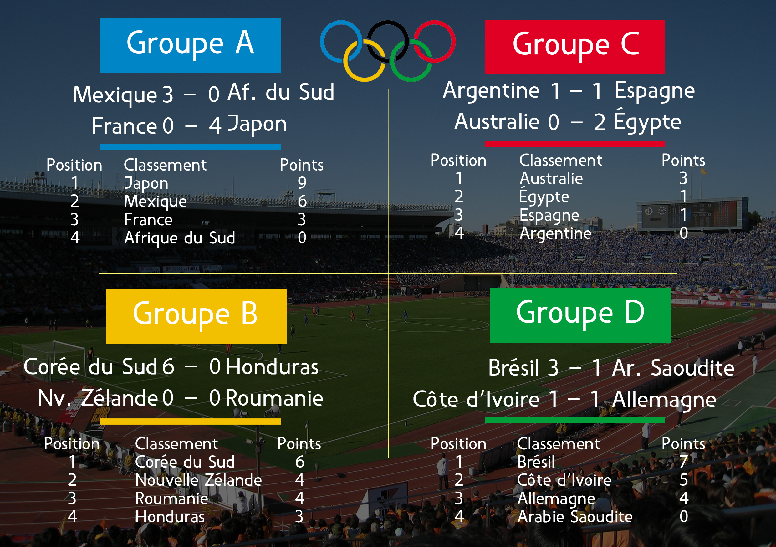 La Côte d’Ivoire ne sera pas le seul pays africain qualifié pour les quarts de finale. L’Égypte a battu l’Australie 2-0 et les suivra. Seule l’Afrique du Sud rentrera à la maison. Les Bafana Bafana ont été humiliés par le Mexique 3-0. Ils repartent avec 0 point de la compétition.