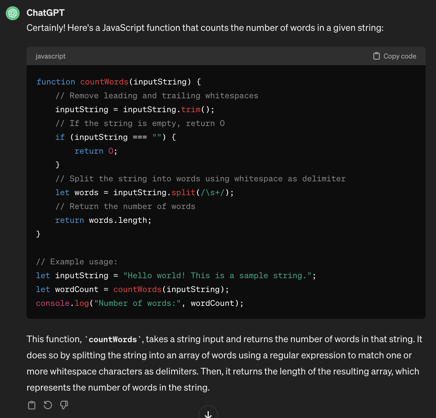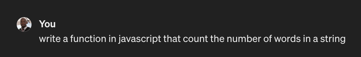 Voici un exemple de requête à ChatGPT qui demande de produire le code pour compter le nombre de mots dans un texte:
