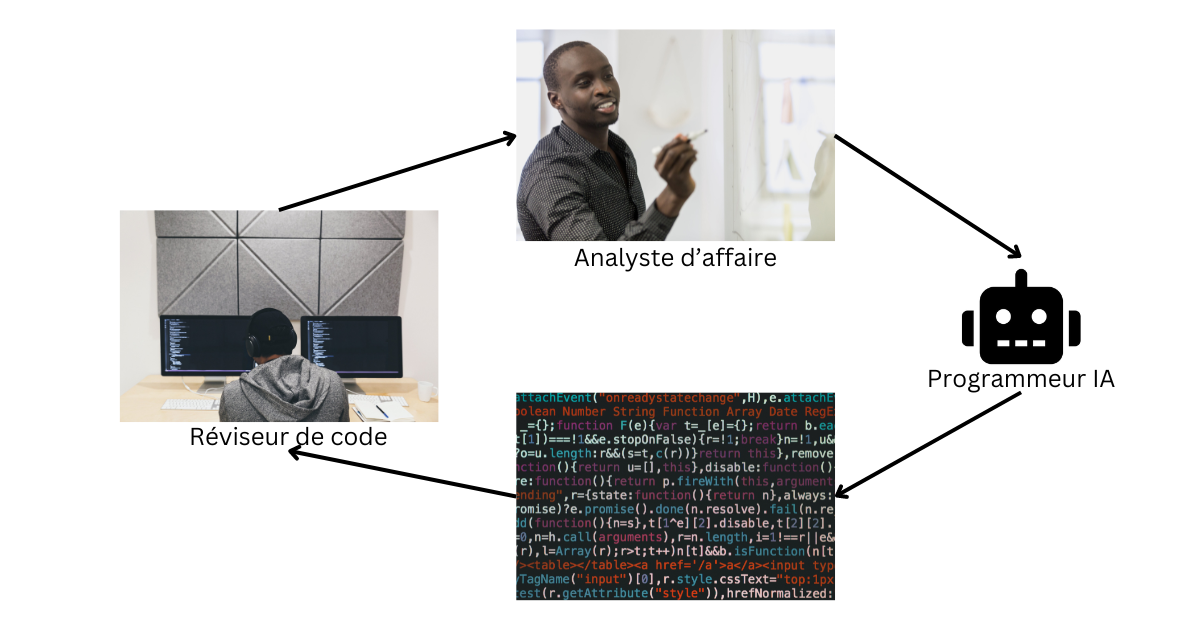 - L'ingénieur humain va reviser et vérifier le code produit par l'IA, fournir le feedback a l'IA pour qu'il fasse des amélioration au besoin.